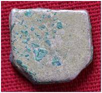 | Description / विवरण | The shape of the coin is irregular. This coin has been found from Tarabha, it is assumed that this type of coin was vogue in Kosala Janapada. Obverse The symbols are defaced due to silver sulphite formation on the surface of the coin. Reverse Blank. |