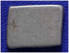 | Description / विवरण | The coin is an imperial type of Punch- marked Coin. The shape of the coin is rectangular. Obverse Symbols are defaced due to abraded. Reverse Blank. |