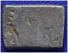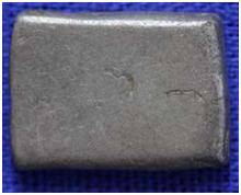 | Description / विवरण | The coin is an imperial type of Punch- marked Coin. The shape of the coin is rectangular. Obverse Sun, mountain and other symbols are defaced. Reverse Two mint mark. |