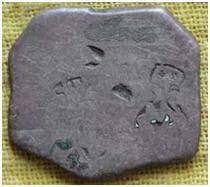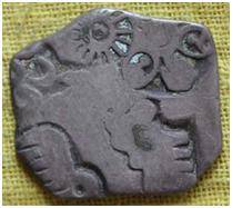 | Description / विवरण | The coin is an imperial type of Punch- marked Coin. The shape of the coin is irregular. Obverse Sun, Six armed wheel, five arched hill, bull, elephant. Reverse Cross within a box and other symbols are indistinct. |
