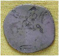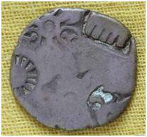 | Description / विवरण | The coin is an imperial type of Punch- marked Coin. The shape of the coin is circular. Obverse Sun, two animals, Six armed wheel and an indistinct symbol. Reverse Animal, two taurines in a box and other symbols are defaced. |