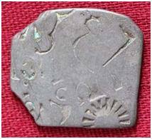 | Description / विवरण | The coin is an imperial type of Punch- marked Coin. The shape of the coin is irregular. Obverse Sun, Six armed wheel, bull, and taurine. Reverse Sun, tree and other symbols are defaced. |