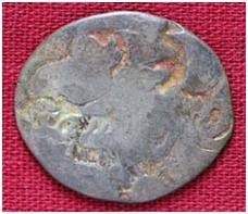 | Description / विवरण | The coin is an imperial type of Punch- marked Coin. The shape of the coin is oval. Obverse Sun, Bull, Six armed Wheel, Taurine and another symbols are defaced. Reverse Sun, Animal, Tree, Fish, Taurine and other symbols are defaced. |