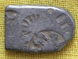 | Description / विवरण | The coin is irregular in shape. It is an imperial type of punch marked coin. Obverse The Symbol of Sun, tree arched gate, six- armed symbols, animal. Reverse Blank |