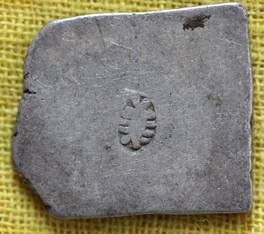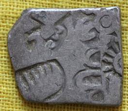 | Description / विवरण | The coin is the imperial type of punch marked coin. It is irregular in shape. Obverse Symbol of three arched Mountain, Sun, six- armed wheel, an elephant. Reverse the symbol of an insect. |