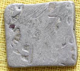| Description / विवरण | The coin is the imperial type of punch marked coin. It is squared in shape. Obverse Sun, nandipada. Other symbols are indistinct. Reverse Blank. |