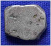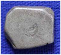 | Description / विवरण | The coin is an imperial type of Punch- marked Coin. The shape of the coin is irregular. Obverse Tree, Mushroom and other symbols are defaced. Reverse Symbols are indistinct. |