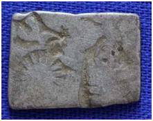 | Description / विवरण | The coin is an imperial type of Punch- marked Coin. The shape of the coin is rectangular. Obverse Sun, Six armed wheel, Tree and another symbols are defaced. Reverse Symbols are indistinct. |