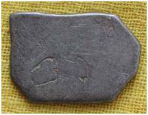 | Description / विवरण | The coin is an imperial type of Punch- marked Coin. The shape of the coin is rectangular. Obverse Sun, Caduceus, Six armed wheel, Taurines and another symbols are defaced. Reverse Symbols are indistinct. |