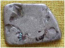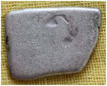 | Description / विवरण | The shape of the coin is irregular. Obverse Six armed wheel and another symbols are indistinct. Reverse Animal figure. |