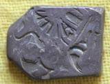 | Description / विवरण | This is an imperial type of punch marked coin. The coin is irregular in shape. Obverse Sun, six armed wheel, animal, taurine. Other symbols are indistinct. Reverse Blank. |