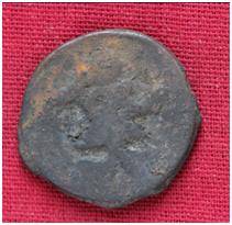 | Description / विवरण | The shape of the coin is circular. Obverse-Kushana type king, standing with right hand curved up wards and not clear. Reverse- Figures are not clear. |