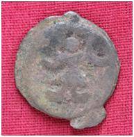 | Description / विवरण | The shape of the coin is circular. Obverse-Kushana type king, standing with his right hand curved up wards and left arm extended. Reverse- Probably the figure of MAO or Moon-God with his right arm curved upwards and the crescent above the left shoulder. |