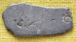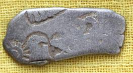 | Description / विवरण | It was the imperial type of coin. The shape of the coin is irregular. Obverse Sun, a triangle. Other symbols are indistinct. Reverse Chakra. |