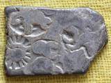 | Description / विवरण | The coin is an imperial type of punch marked coin. It is irregular in shape. Obverse Sun, six-armed wheel, moon, taurine Reverse moon, six dots in two rows, tree. |