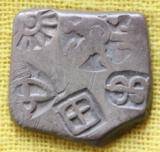 | Description / विवरण | The coin is pentagonal in shape. Obverse Five symbols, i Sun ii wheel iii Caduceus iv Six-armed wheel v four square. Reverse Auspicious symbol. |