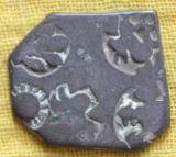 | Description / विवरण | The coin is imperial type of punch marked coin. It is irregular in shape. Obverse Sun, six armed wheel, tree, bull, animal. Reverse Sun and other indistinct symbols. |
