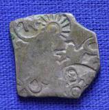 | Description / विवरण | This is an imperial type of punch marked coin. The shape of the coin is hexagonal. Obverse Sun, caduceus, animal, taurine, six armed wheel. Reverse Moon. |