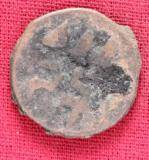 | Description / विवरण | The shape of the coin is circular. Obverse probably the figure of MAO or Moon god with his right hand downwards and crescent above the left shoulder. Reverse Three hills or cone like objects placed in a straight line and below them some letters. |