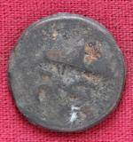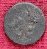 | Description / विवरण | The shape of the coin is circular. Obverse Probably the figure of MAO or moon god with his right hand e xtended and the crescent above the left shoulder. Reverse Three hills or cone like objects placed in a straight line and below them some letters. |