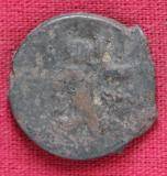 | Description / विवरण | The shape of the coin is circular. Obverse Probably the figure of MAO or Moon God with right hand downwards and the crescent above the left shoulder. Reverse Three hills or cone like objects placed in a straight line and below them some letters. |