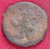 | Description / विवरण | The shape of the coin is circular. Obverse Kushana type king, standing with his right hand curved and his left arm e xtended. Reverse Probably the figure of MAO or Moon-God with his right arm curved and the crescent above the left shoulder. |