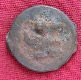 | Description / विवरण | The shape of the coin is circular. Obverse Kushana type king, standing with his right hand curved upwards and his left arm e xtended. Reverse Probably the figure of MAO or Moon-God with his right arm curved upwards and the crescent above the left shoulder. |