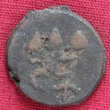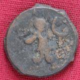 | Description / विवरण | The shape of the coin is circular. Obverse the MAO or Moon God standing with his right arm e xtended downwards and crescent above the left shoulder. Reverse Three hills or cone like objects placed in a staight line and below them some letters. |