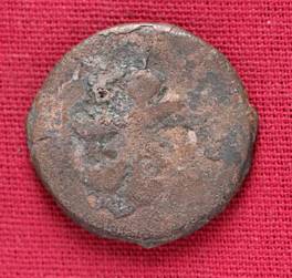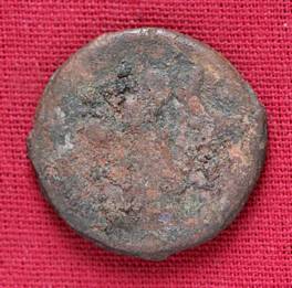 | Description / विवरण | The shape of the Coin is circular. Obverse -A Kushana type king standing with his right arm extended and left arm curved upwards. Reverse -Probably, a standing figure of MAO or Moon-God with right arm extended and the crescent above the left shoulder. The left arm is not visible. |