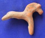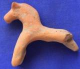 | Description / विवरण | Model probably of a horse. The eyes are represented by incised pellets, nostrils by holes. It has a long neck. Row of circular punches and vertical lines all over the body. Three large vertical lines are on the left side of the neck. The hind left leg is broken. |