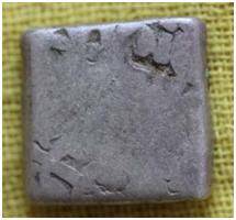 | Description / विवरण | The shape of the coin is square. Obverse Six armed wheel wheel, Ujjain and tree. Reverse Blank. |
