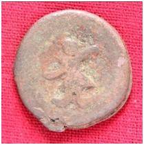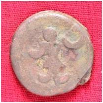 | Description / विवरण | The shape of the coin is circular. Obverse- Kushana type king standing with his right hand upwards and left arm extended. Reverse-- probably the figure of MAO or Moon God- with right arm curved up wards and the crescent above the left shoulder. |