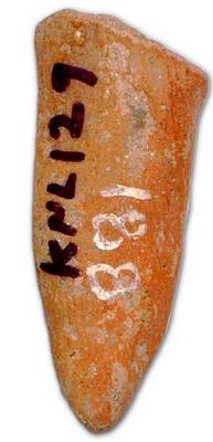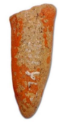 | Description / विवरण | Leg of a red ware pot with flat base and thick, straight foot end. It looks like a horn of bull |