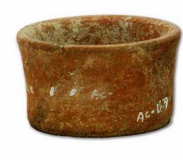 | Description / विवरण | A small red ware stand with concave body and outturned blunt top with finished rim and unfinished bottom. |