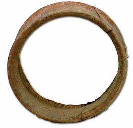 | Description / विवरण | Circular rim stand in red ware with thick everted finished rim, and unfinished irregular bottom. |
