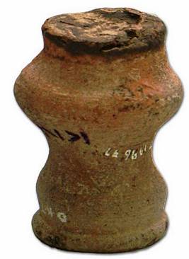 | Description / विवरण | Miniature red ware measuring vessel double pot with flat base and internally thickened rim. |