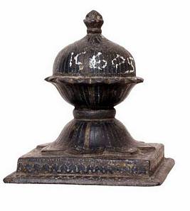 | Description / विवरण | It has a square stepped base with rich inlay work. An inverted lotus pedestal luted to the base, over which is a blossomed lotus. Above it is a domical part with finial or knob. |