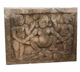 | Description / विवरण | An erotic sculpture showing a woman making love with a counter part up side down and aided by her two companions. |