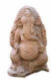 | Description / विवरण | Seated image of Ganesa in ardha paryankasana posture. The head dress comprises a karandamakuta in 5 tiers with prominent niche on the front. The ears are broad. The two rear hands hold trident and staff. The lower right hand is in varada mudra while left hand holds the modaka. The trunk is short and curved towards right and touching the modaka. The ornaments are a three strapped udarabandha and broad yajnopavita. There is also wristlets, keyuras and anklets. In the left corner at the bottom the vehicle mouse mushika . |