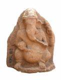 | Description / विवरण | Seated image of Ganesa with a karandamakuta, the right rear hand is broken while left rear hand holds a damaru. The lower right is in abhaya mudra where as the lower left holds the modaka. The trunk is turned towards right and broken in lower part. There is a udarabandha around the belly. It is important to note that this image has no yajnopavita. |