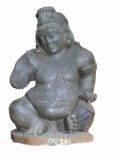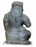| Description / विवरण | Kubera one of the guardian deities is seated with right leg slightly raised upwards resting on the base while the left leg is bent and turned inwards with the foot open. The face is broad with thick lips and chin and on the head is jatamakuta with a circular lump on the top. The hair is braided with locks of hair falling on either side. A prominent feature of this image is its protruding large belly. The ornaments include a tight kanthamala, flowing garland like haras and a long yajnopavita across left shoulder in three strands made of pearls. There is udarabandha. The right hand raised upwards while the left one rests on the knee pointing downwards. The whole image looks stout and short in proportions. On the hind side is a prominent circular disc. Shoulders are decked with keyuras or bahuvalaya. The drapery comprises a lower garment with a broad fold in the centre. |