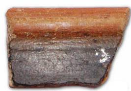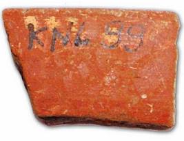 | Description / विवरण | Rim fragment of a black and red ware bowl with incurved, thickened rim, painted in chess pattern design with white pigment below the rim Russet coated Andhra ware . |