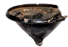 | Description / विवरण | Highly polished black ware lid with broken handle and knob, concentric circles prominently seen at the base of handle, incurved projected rim at its base. |