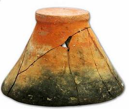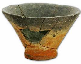 | Description / विवरण | Black and red ware pot with flat base and high neck, straight shoulder with featureless rim. |