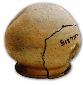 | Description / विवरण | Red ware pot with globular body with convex neck, splayed out thickened rim, round base, concentric grooves on the shoulders, damaged rim. |