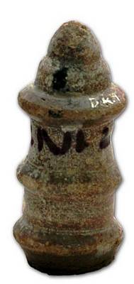 | Description / विवरण | Chocolate red color lid looks like a poornakalasa on a pedestal. The finial part is broken and missing, prominent double groove is seen on the body. |