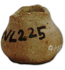 | Description / विवरण | Miniature red ware pot with globular body and flat base, damaged rim, it is devoid of slip. |