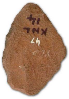 | Description / विवरण | Spear shaped flake with flake scars on the dorsal side and flat under surface. It has pointed edge on the top and flat bottom. |