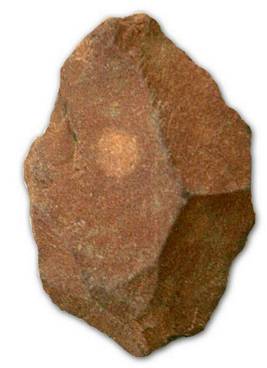 | Description / विवरण | Hand axe made on thick flake, oval in shape having thick medial portion and sharp sides, broken pointed edge and flat under surface, Plano convex in its cross section. |