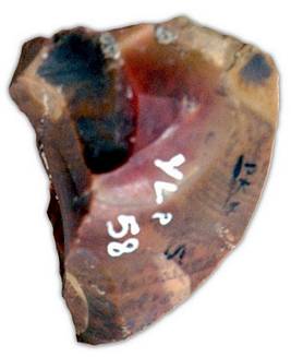 | Description / विवरण | Core with prepared flat form at one end and pointed edge on the other, fluted marks on its body, it retained pebbly cortex surface. |